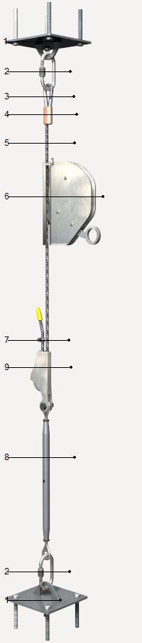 | YCL170 | Línea de anclaje vertical temporal, de cable de acero, con dispositivo anticaídas deslizante | |