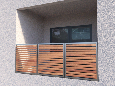Celosía fija de lamas horizontales fijas de madera de pino de Flandes, de 60 mm de anchura y 20 mm de espesor, con tratamiento fungicida y acabado lasurado para exterior, enrasadas con el marco de aluminio extruido de aleación 6063 con tratamiento térmico T5, de 45x45 mm de sección, lacado en color a elegir y elementos para fijación de las lamas de acero inoxidable. Incluso elementos de fijación para montaje anclaje mecánico con chazos de nylon y tornillos de acero sobre superficie soporte de mampostería. | ||