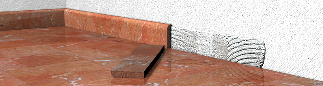 Guardaescoba de caliza Marbella con la calidad exigida por el método de clasificación de "LEVANTINA", acabado abujardado, de 7 cm, color blanco cremoso, procedente de Zarcilla de Ramos, Murcia (España). |