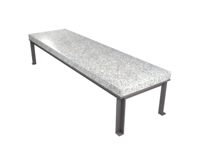 Banco de 55x42x190 cm, con asiento de pórfido patagónico y cuerpo estructural de perfiles de acero con protección antioxidante y pintura de color negro, colocación con chazo químico, arandela y tornillo.
