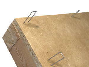 Doble tablero estructural de madera para losa, sobre estructura de madera, compuesto por tablero inferior para uso en ambiente seco, de 2400x900 mm y 30 mm de espesor, machihembrado en sus cuatro cantos; rastrel de 60x40 mm de sección, de madera de pino pinaster (Pinus pinaster), tratada en autoclave, con clase de uso 4, acabado cepillado, con humedad inferior al 20% fijados con tornillos y tablero superior para uso en ambiente seco, de 2400x900 mm y 30 mm de espesor, machihembrado en sus cuatro cantos. Incluso grapas de acero al carbono galvanizado electrolítico, para fijación de los tableros. | ||
