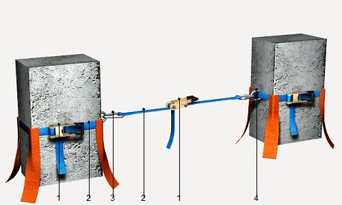 | Línea de anclaje horizontal temporal, de cinta de poliéster, fijada a soporte de concreto o metálico | ||