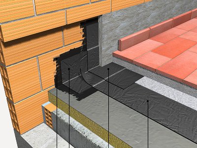 | Encuentro de cubierta plana transitable, no ventilada con paramento vertical. Impermeabilización con mantos asfálticos | ||