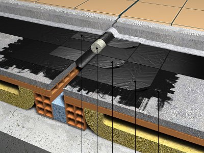 | Junta de contracción en cubierta plana transitable, ventilada. Impermeabilización con mantos asfálticos | ||
