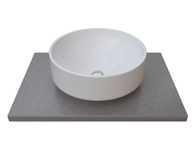 Lavamanos circular sobre mesón, de arcilla refractaria, acabado termoesmaltado, color blanco, de 400 mm de diámetro exterior y 158 mm de altura, con válvula de desagüe de latón cromado, con sifón botella de ABS, acabado brillante imitación cromo. Incluso juego de fijación y silicona para sellado de juntas. | ||