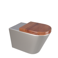 Taza de sanitario sin tanque integrado, para instalación con fluxor (no incluido en este precio), de acero inoxidable AISI 304, para adosar a la pared, de 655x360x400 mm, con asiento y tapa de sanitario, de madera. Incluso tubo para evacuación horizontal del sanitario, tornillos de seguridad de acero inoxidable y silicona para sellado de juntas. | ||