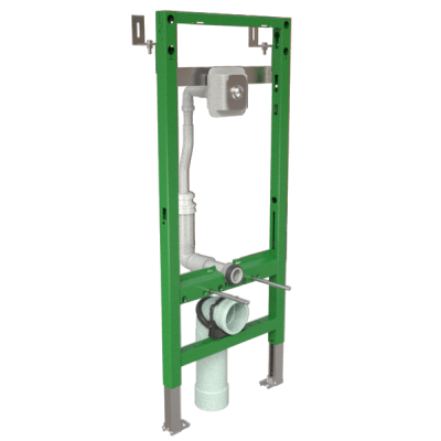 Fluxor, con descarga ajustable entre 6 y 9 litros, sobre bastidor premontado, de 1130 mm de altura y 500 mm de anchura, de acero con revestimiento anticorrosión, con patas de apoyo ajustables en altura hasta 200 mm, para sanitario suspendido, con conexión de suministro, llave de corte, tubo guía para tubo de alimentación de aparatos sanitarios, codo de desagüe de polipropileno de 90 mm de diámetro, manguito adaptador de polipropileno, varillas roscadas para soporte de sanitario y elementos de fijación, con juego de anclajes de pared, ajustable en longitud entre 130 y 230 mm y pulsador antivandálico para accionamiento de fluxor, de acero inoxidable, de descarga única, de 156x197x19 mm, con marco de fijación. Instalación empotrada en muro de mampostería. | ||