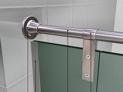 Cabina sanitaria, de 900x1400 mm y 2000 mm de altura, de tablero fenólico HPL, de 13 mm de espesor, color a elegir; compuesta de: puerta de 600x2000 mm y 2 laterales de 2000 mm de altura; estructura soporte de aluminio anodizado, formada por perfil guía horizontal de sección circular de 25 mm de diámetro, rosetas, pinzas de sujeción de los tableros y perfiles en U de 20x15 mm para fijación a la pared y herrajes de acero inoxidable AISI 316L, formados por bisagras con muelle, tiradera con condena e indicador exterior de libre y ocupado, y pies regulables en altura hasta 150 mm. | ||